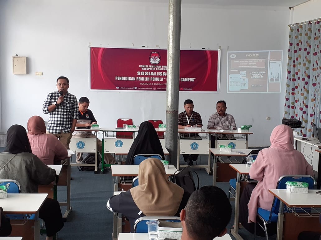 Materi selanjutnya yang disampaikan oleh Anggota KPU Divisi Teknis Penyelenggara Hendrik Imran menjelaskan verifikasi faktual yang akan dilakukan oleh KPU Kab Boaleo di antaranya memastikan wujud kantor partai, keanggotaan partai yang harus memenuhi syarat minimal 1/1000 dari jumlah penduduk yang ada di kab Boalemo.