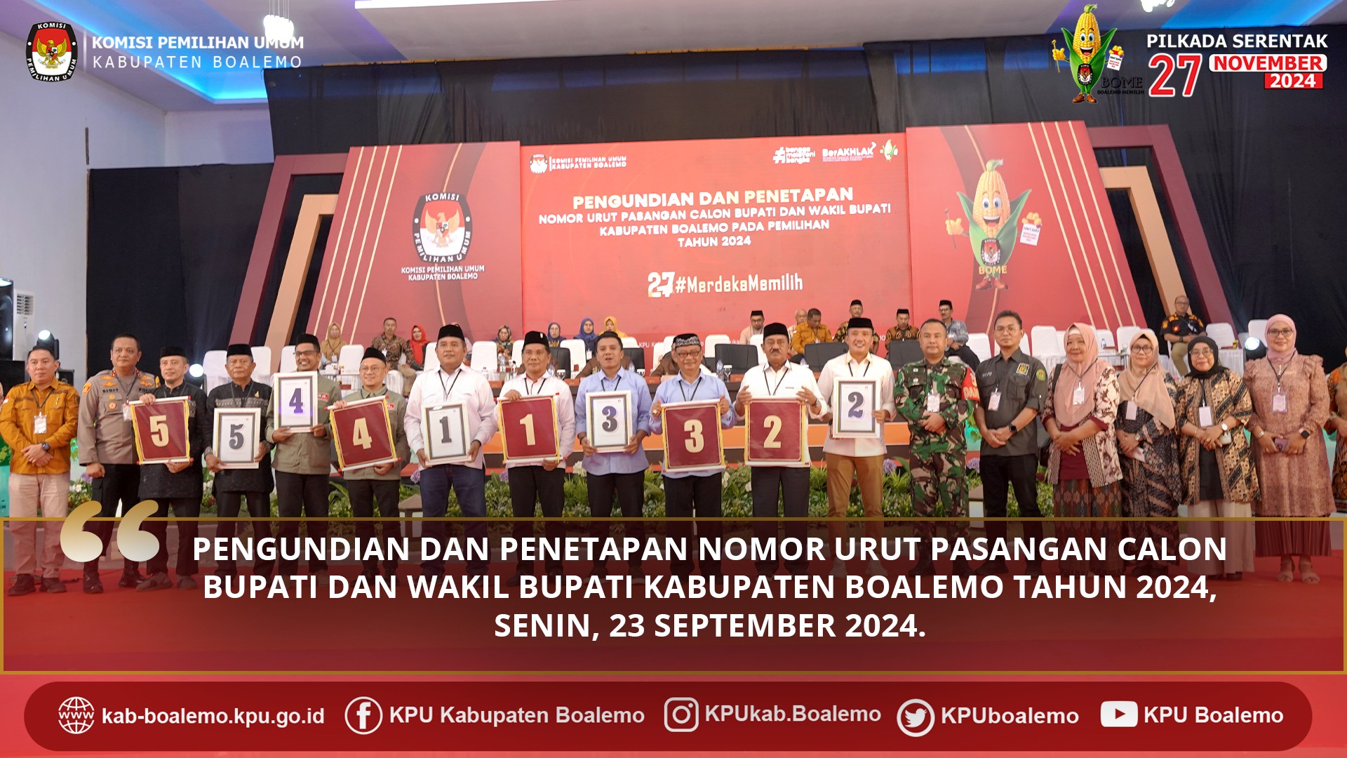 KPU BOALEMO GELAR PENGUNDIAN DAN PENETAPAN NOMOR URUT PASANGAN CALON BUPATI DAN WAKIL BUPATI KABUPATEN BOALEMO
