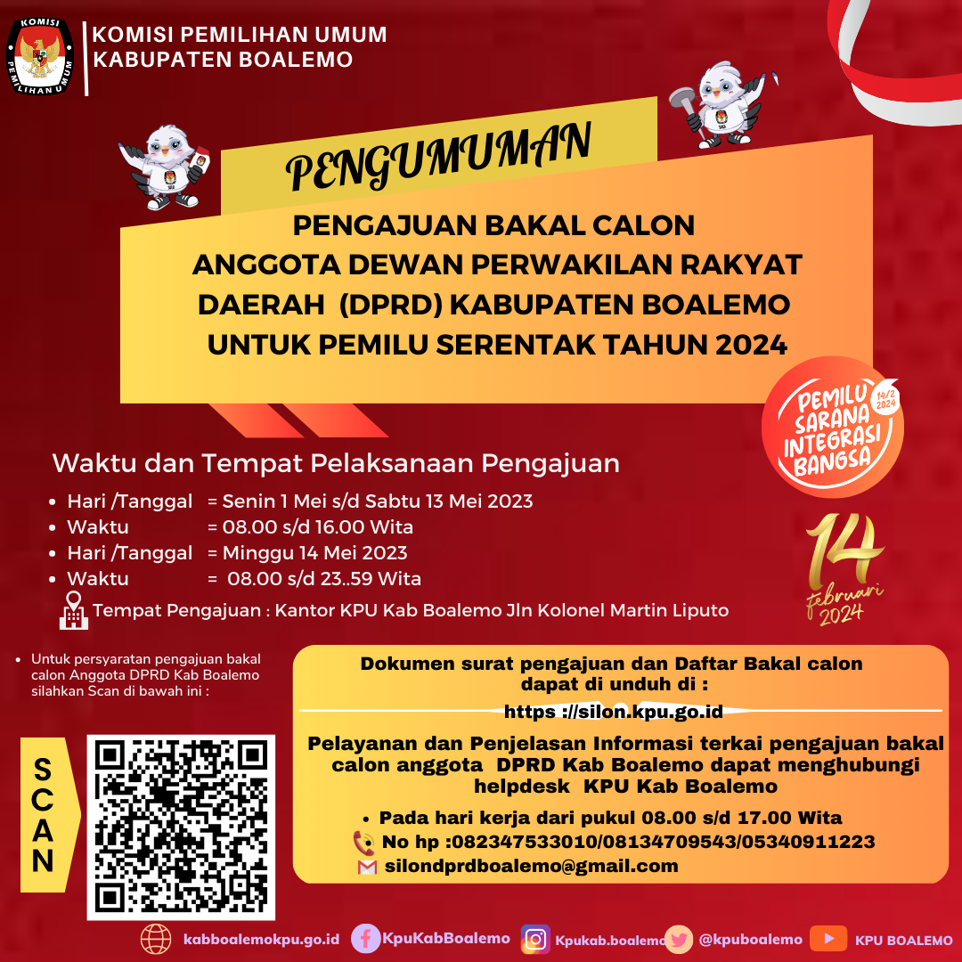 Pengumuman KPU Kabupaten Boalemo Nomor 23/PL.01.7-Pu/7502/2024 tentang Hasil Penerimaan LADK Perbaikan Peserta Pemilu 2024